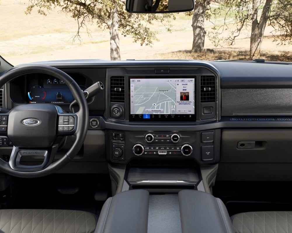 The 2026 F-350 Super Duty comes with a wide range of standard and advanced driver-assist technologies. You’ll find a rear-view camera, trailer sway control, and pre-collision assist with automatic emergency braking all included. Advanced options like blind spot monitoring, lane-keeping alert, and adaptive cruise control give even more confidence when towing or travelling long distances. Whether you’re in heavy traffic or heading down a country road, the F-350 is designed to help you feel secure every step of the way.